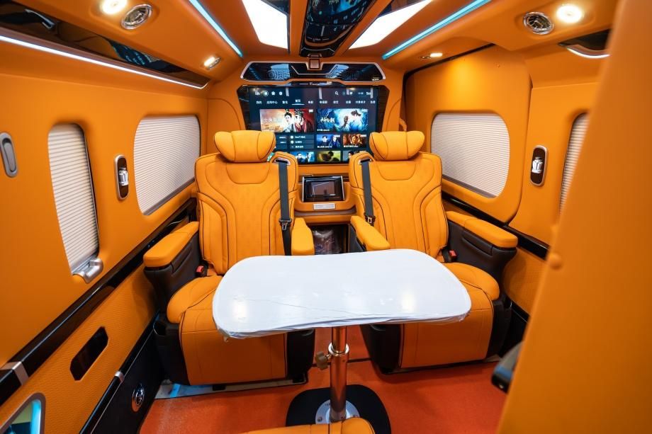 在寻求特性与有用的商务出行商场,海狮6座定制版凭仗生机橙黑线双拼色内饰锋芒毕露,调配电动升降电视全间隔、茶台工作桌与车载卫生间等硬核装备,既打破传统商务车的烦闷感,又构建起高效私密的移动工作空间,成为商务人士的新宠。